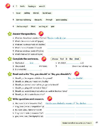 1 she/ ever / climb/ mountain? (r) Has she ever climbed a mountain? Yes, she has.
