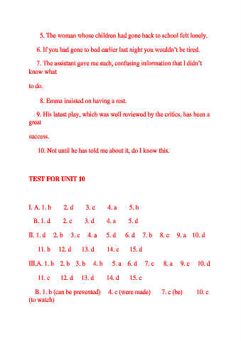 III.A. 1. b 2. b 3. b 4. b 5. a 6. d 7. c 8. a 9. c 10. d
