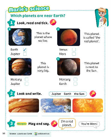 2 Look and write. Jupiter Earth the Sun