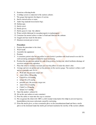 5. A conscious patient who has gag reflex in semi-fowler’s position with head turned to on side for