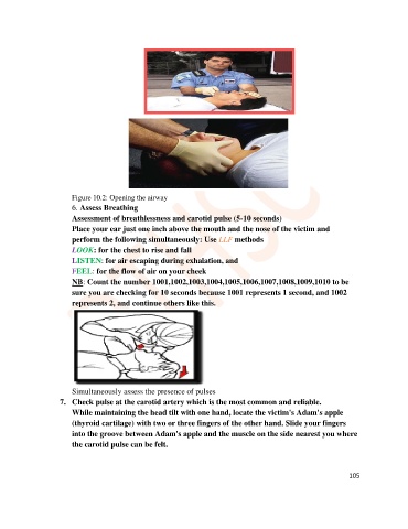 Assessment of breathlessness and carotid pulse (5-10 seconds)
