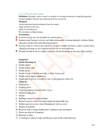 Definition: Dressing a septic wound is a method of covering an infected wound that generally