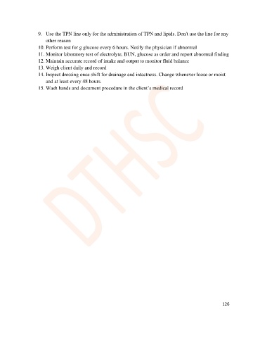 9. Use the TPN line only for the administration of TPN and lipids. Don't use the line for any