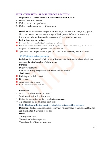 UNIT –THIRTEEN: SPECIMEN COLLECTION
