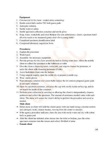 11. Perform urine collection by assisting or allowing the client to independently cleanses
