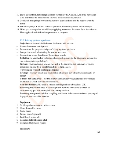 13. Place the syringe in ice and send the specimen immediately to the lab for analysis.