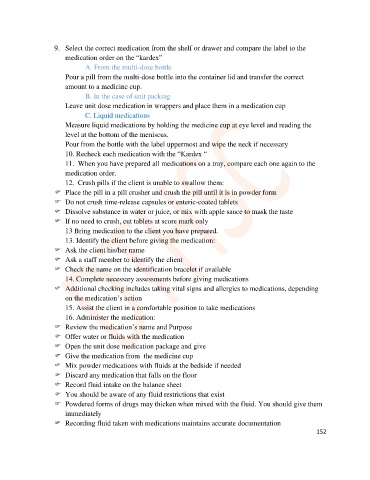 9. Select the correct medication from the shelf or drawer and compare the label to the