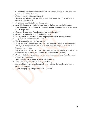 Close doors and windows before you start certain Procedures like bed bath, back care,