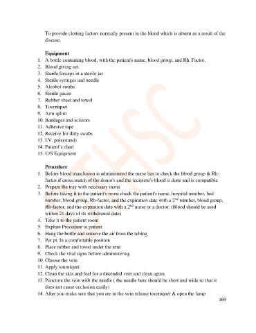 To provide clotting factors normally present in the blood which is absent as a result of the