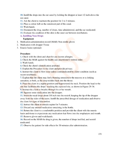 away from the sides of the nares. Instill the prescribed dosage of medication and observe