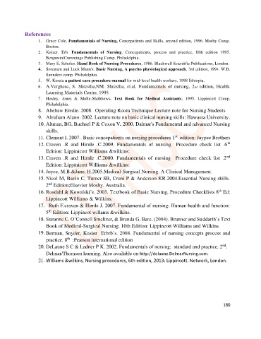 1. Grace Cole, Fundamentals of Nursing, Concepatients and Skills, second edition, 1996. Mosby Comp.