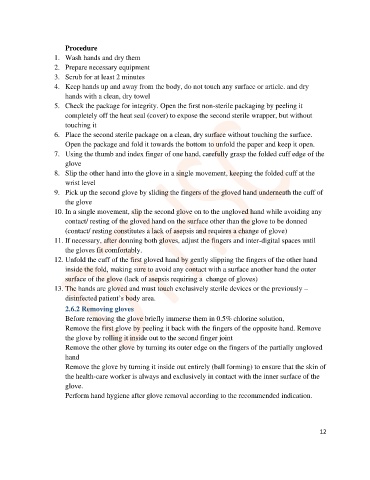 13. The hands are gloved and must touch exclusively sterile devices or the previously –