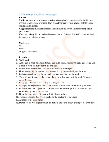 8. After performing necessary tasks, remove the cap and mask before leaving the room.