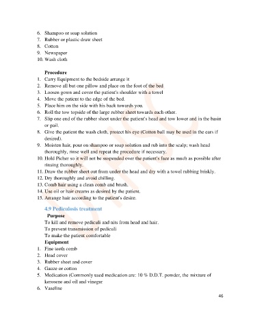 9. Moisten hair, pour on shampoo or soap solution and rub into the scalp; wash head