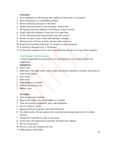 A tepid sponge bath is sponging the skin with alcohol or cool water to reduce the
