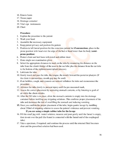 15. Once you confirm the proper placement of the tube, begin gastric lavage by instilling