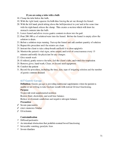 21. Lower funnel and allow excess gastric contents to drain into the pail.