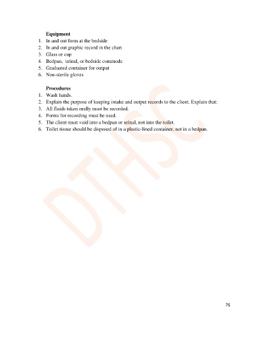 5. The client must void into a bedpan or urinal, not into the toilet.