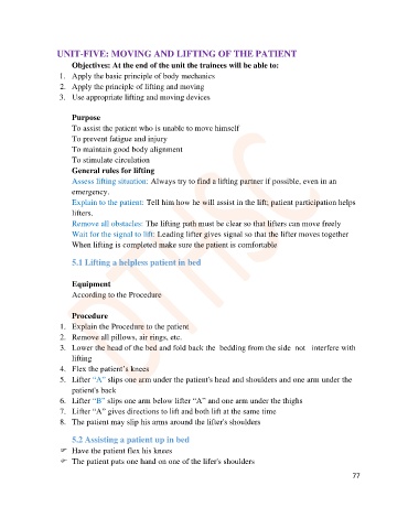 UNIT-FIVE: MOVING AND LIFTING OF THE PATIENT