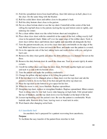 patient to hold it. Go to the foot of the bed and pull the dirty top sheet out.