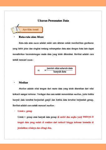 terkecil sampai terbesar. Terdapat dua cara untuk menentukan median, yaitu ketika
