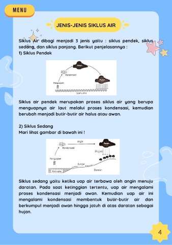Siklus Air dibagi menjadi 3 jenis yaitu : siklus pendek, siklus