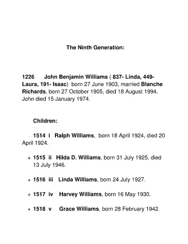 + 1516  iii   Linda Williams, born 24 July 1927.