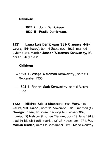 1231 Laura Lois Derrickson (839- Clarence, 449-