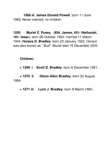 + 1571 iii Lynn J. Bradley, born 8 March 1960.