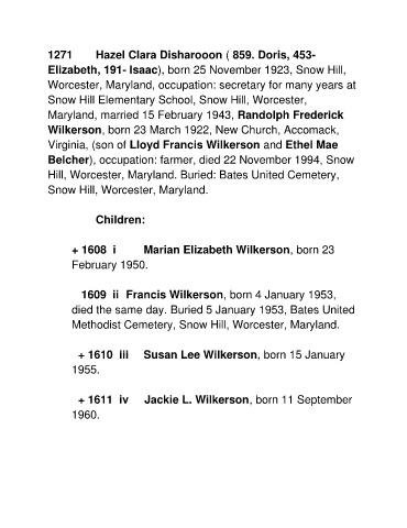 + 1611 iv Jackie L. Wilkerson, born 11 September