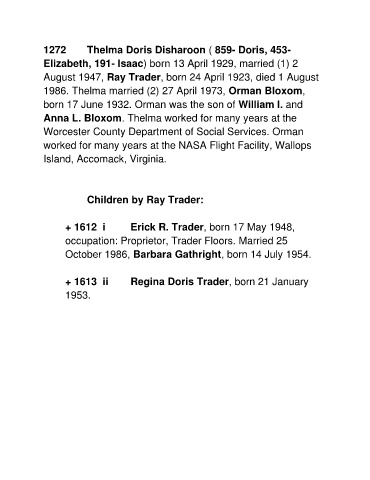 1986. Thelma married (2) 27 April 1973, Orman Bloxom,