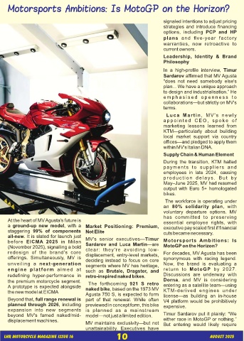 the premium motorcycle segment. The forthcoming 921 S retro Dorna, and MV is considering