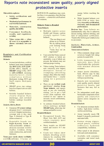 SHARP ratings (UK). DOT absorption: instead of · Armor inserts (shoulders,