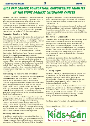 families with limited treatment options and hope. The      In every life it touches, the Kids Can Cancer Foundation