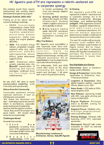 ·  2026:  Full  product  lineup    MV  Agusta's  pivot  exemplifies  a     legacy; missteps could threaten its