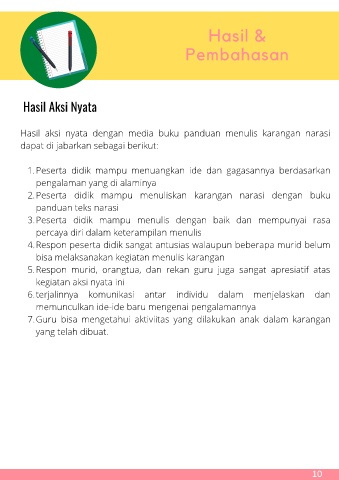 Hasil aksi nyata dengan media buku panduan menulis karangan narasi