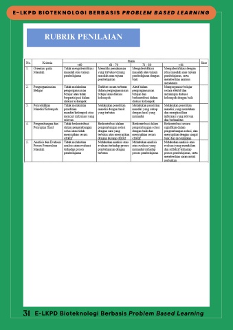 E-LKPD BIOTEKNOLOGI BERBASIS PROBLEM BASED LEARNING RUBRIK PENILAIAN 31 E-LKPD Bioteknologi Berbasis Problem Based Learning
