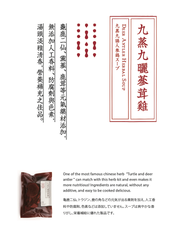 One of the most famous chinese herb "Turtle and deer antler " can match with this herb kit and even makes it more nutritious! Ingredients are natural, without any additive, and easy to be cooked delicious.