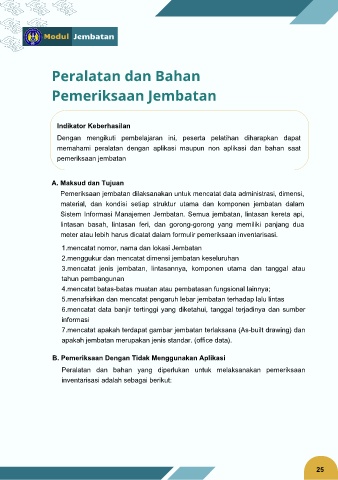 Pemeriksaan jembatan dilaksanakan untuk mencatat data administrasi, dimensi,