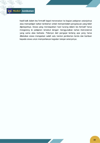 dipelajarinya. Siswa yang mendapatkan hasil kurang dalam tes formatif harus