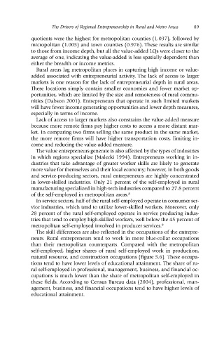 The Drivers of Regional Entrepreneurship in Rural and Metro Areas 89