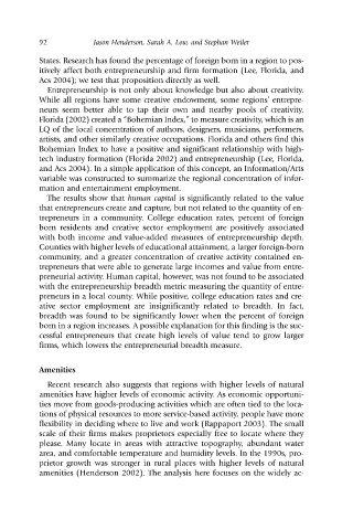 tech industry formation (Florida 2002) and entrepreneurship (Lee, Florida,
