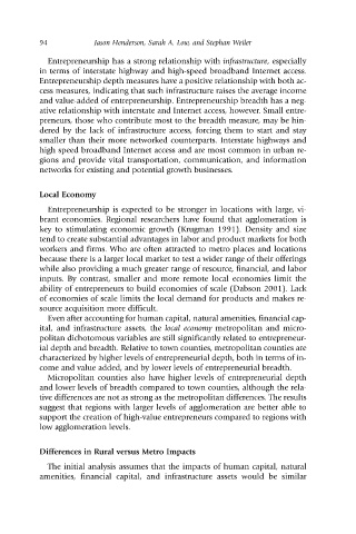 ability of entrepreneurs to build economies of scale (Dabson 2001). Lack