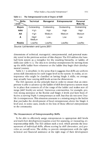 skills (see table 6.1). The idea is to develop entrepreneurs by moving them