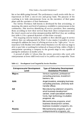 Table 6.2. Development Level Targeted by Service Providers