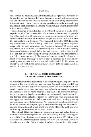 ment, entrepreneurship focuses on human, not physical, development. It is