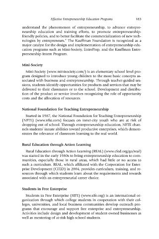 cation programs such as Mini-Society, EntrePrep, and the Kauffman Entre-