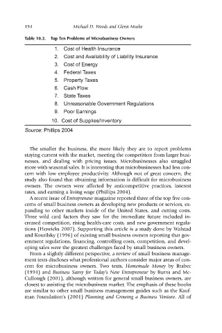 Table 10.2. Top Ten Problems of Microbusiness Owners