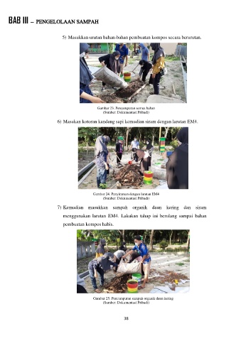 5) Masukkan urutan bahan-bahan pembuatan kompos secara berurutan.