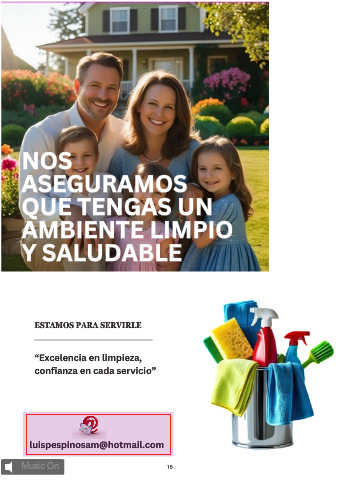 NOS ASEGURAMOS QUE TENGAS UN AMBIENTE LIMPIO Y SALUDABLE ESTAMOS PARA SERVIRLE “Excelencia en limpieza, confianza en cada servicio” luispespinosam@hotmail.com 15